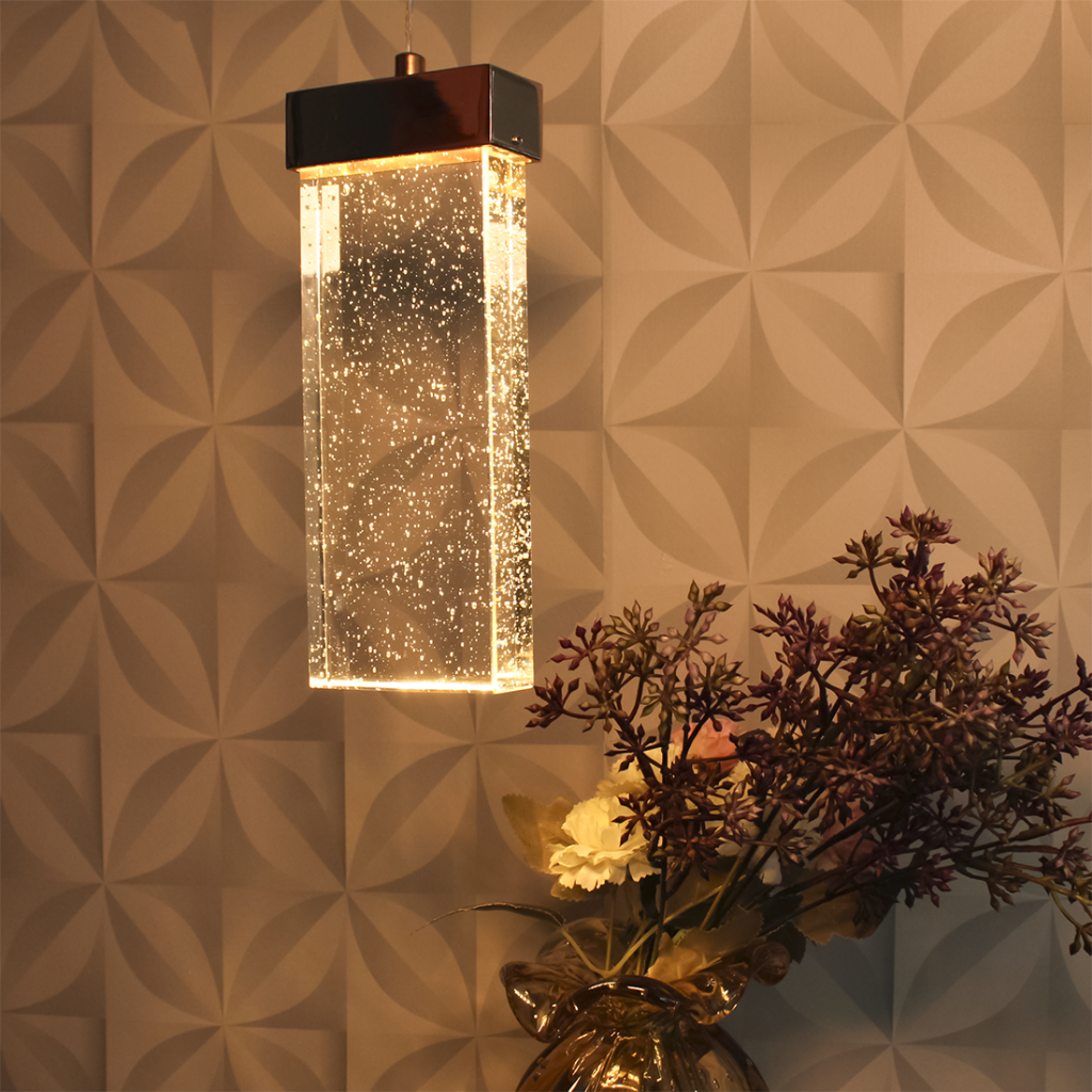 Pendente Cristal Led 3 Cores Bolhas Retangular PD08