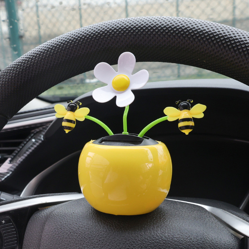 Pendente De Flor Oscilante Movido A Energia Solar-Acessórios Montados Em Veículos Para Janela De Painel-Enfeites De Carro De Flores De Animais Com Cabeça Balançando Fofa-Decoração De Primavera Do Console Central