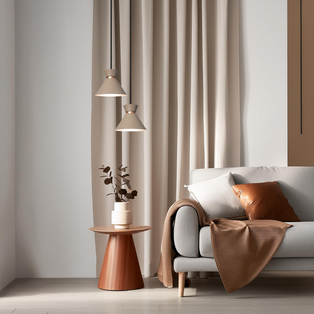 CONTEÚDO DO ANÚNCIO: - 01 Pendente Lustre Duplo Berlim 15cm em Alumínio - Fendi com cobre - NÃO ACOMPANHA LÂMPADA _________________________________ Os pendentes são uma ótima opção decorativa e moderna, além de deixar a luminosidade mais próxima dos pontos que você almeja destacar, sendo ideais para iluminar mesas de jantar, bancadas na cozinha, mesas de escritório, quartos, lavabos e onde mais você desejar. - Material: Alumínio - Acabamento - Pintura Eletrostática - Voltagem: Bivolt 110/220v - Soquete: E-27 - Utiliza 2 lâmpada LED, Fluorescente ou Incandescente - Dimensões (cada pendente) : altura 15 cm x diâmetro 18 cm - Cabo: 150 cm (regulável) - Canopla (Acabamento para o teto): Diâmetro 16 cm