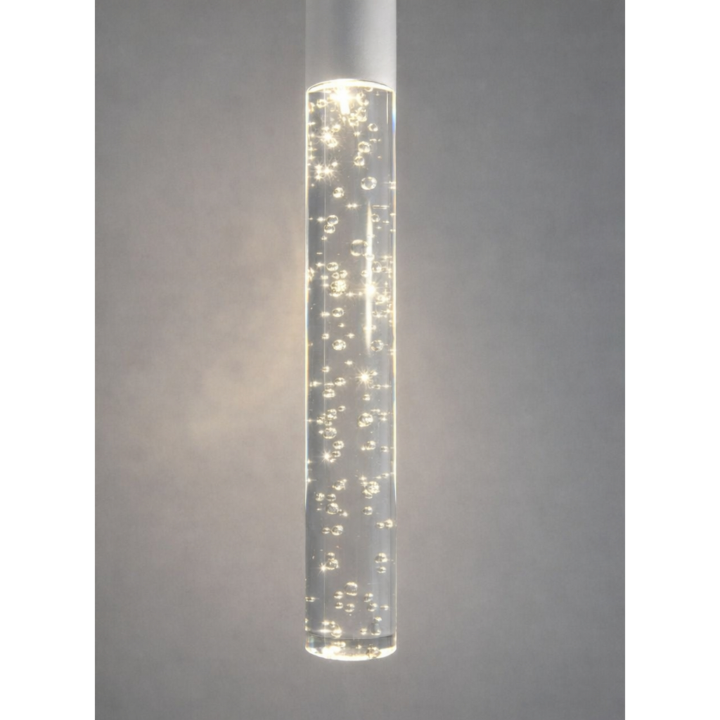 Pendente Tubo com Acrílico Bolhas – Design Moderno e Iluminação Elegante Este pendente tubular une sofisticação e minimalismo em um só produto. Ideal para bancadas, lavabos, corredores e ambientes que pedem um toque de elegância discreta. Especificações do Produto: Material: Metal e Acrílico Cores disponíveis: Branco ou Preto Tensão: Bivolt (110V–220V) Potência: 3W Temperatura de Cor: 3000K (luz branca quente) LED Integrado (não precisa de lâmpada) Comprimento total: 38 cm 8 cm de corpo em metal 30 cm de tubo em acrílico com efeito bolhas Diâmetro: 3 cm Fio ajustável: até 1,20 m Diferenciais: Tubo em acrílico com bolhas internas decorativas Design moderno e limpo Ideal para uso individual ou em composições múltiplas Instalação simples e segura Ambientes Indicados: Lavabos Bancadas Ilhas de cozinha Corredores Ambientes comerciais e decorativos