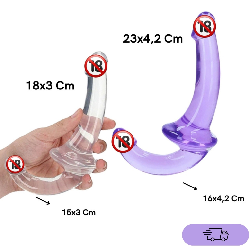 Descrição Do Produto: ENVIAMOS EMBALAGEM 100% DISCRETA 100% Á PROVA D'ÁGUA Pênis Para Casal Duplo De Duas Pontas Cores: Bege/ Roxo/ Transparente Medida: -18,5x 3 Cm -23x4,2 Cm Material:Silicone Higienize sempre antes e após o uso; Mantenha fora do alcance de crianças; Manter ao abrigo do calor e luz excessiva; Recomendações: Recomenda-se o uso de lubrificante.