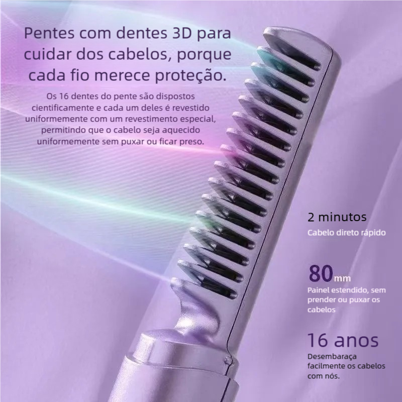 Pente Alisador Quente Portátil - Recarregável com Bateria de Longa Duração
