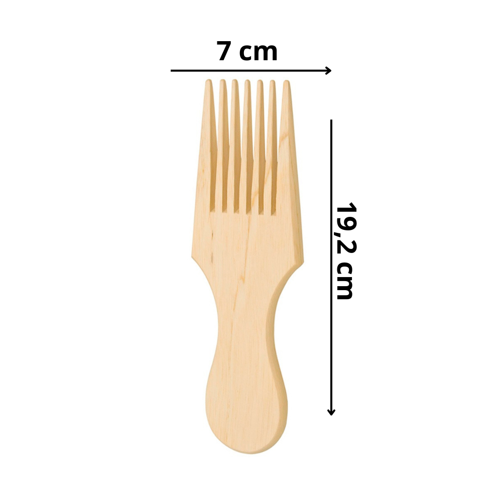 Pente Anti-estático Garfo Grande Com Unidade O Pente Garfo Grande possui dentes grossos e espaçados, com ele vai ficar mais fácil reduzir o volume e manter o cabelo saudável, brilhante e bem-nutrido, e pode ser utilizado também com os cabelo molhados, este pente auxilia a escovação sem danificar os fios. Ele é indicado para cabelos que sofrem com o frizz responsável pelos fios arrepiados e quebradiços, a madeira ajuda a retirar a eletricidade estática dos fios, reduzindo a formação do frizz. Os seus dentes são suavemente arredondados para minimizar as quebras das fibras capilares durante o pentear. Composição: Magno 100%. Medida: Largura 7cm x 19,2cm de Comprimento. Embalagem: 01 Unidade. Produto não Perecível. Validade Indeterminada. Fabricado por: Santa Clara