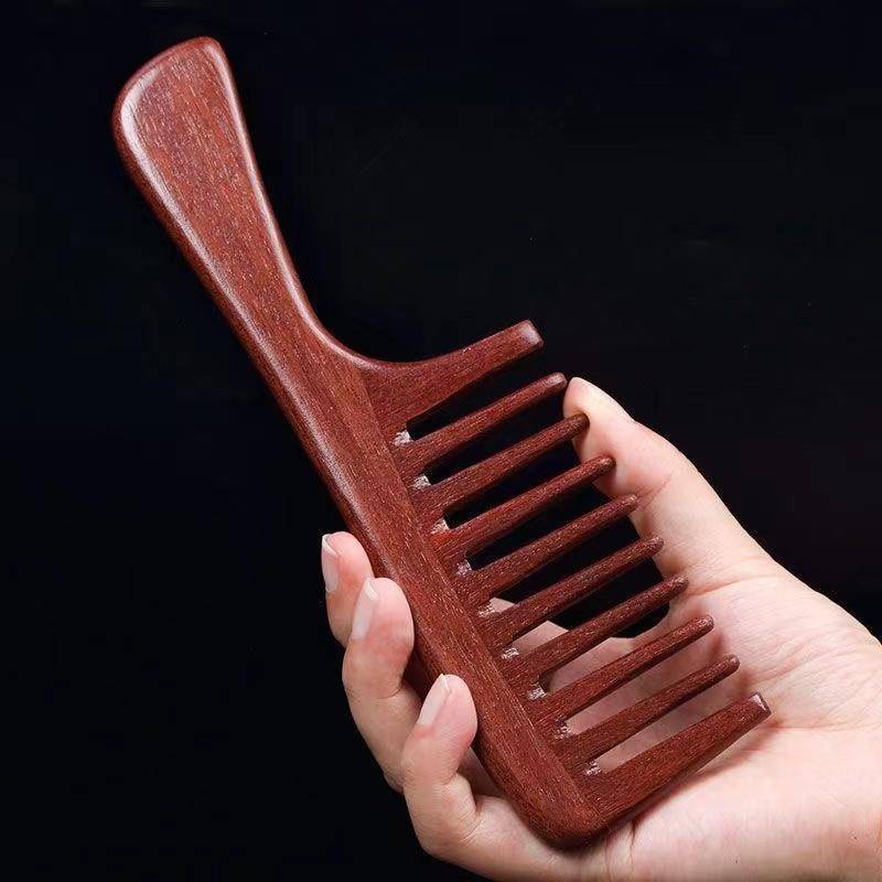 Pente De Madeira De Dente Grande Largo Sândalo Natural Feito À Mão Para Mulheres Homens Cabelos Lisos Cacheados