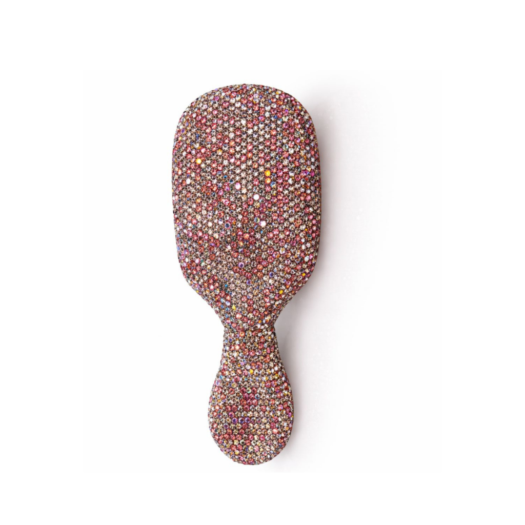 Pente Escova de Cabelo Compacta Strass + Bolsinha Veludo Desembaraçante