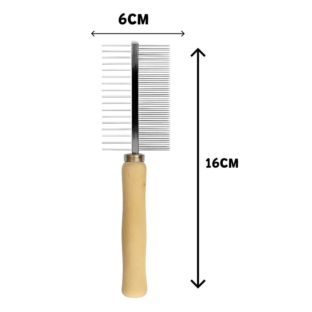 Pente Escova Duplo para Cachorro Gato Pet Remove Tira Pelo Anti Embolamento Higiene Cabo de Madeira