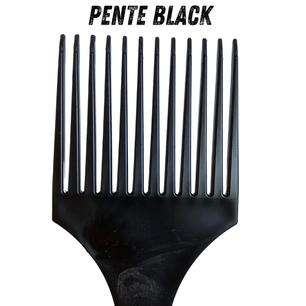 Você está comprando: 01 Pente Garfo Black Power Para Cabelo Afro E Cacheado Modo de usar: Para usá-lo, encaixe o pente na raiz horizontalmente e dê leves puxadinhas em direção ao comprimento, levantando a raiz. Ele deve ser tirado ainda paralelo à raiz. Quanto mais pentear o cabelo da raiz para o comprimento, mais volume é adicionado. Contém: 1 unidade Composição: Nylon PA6 e Pigmento