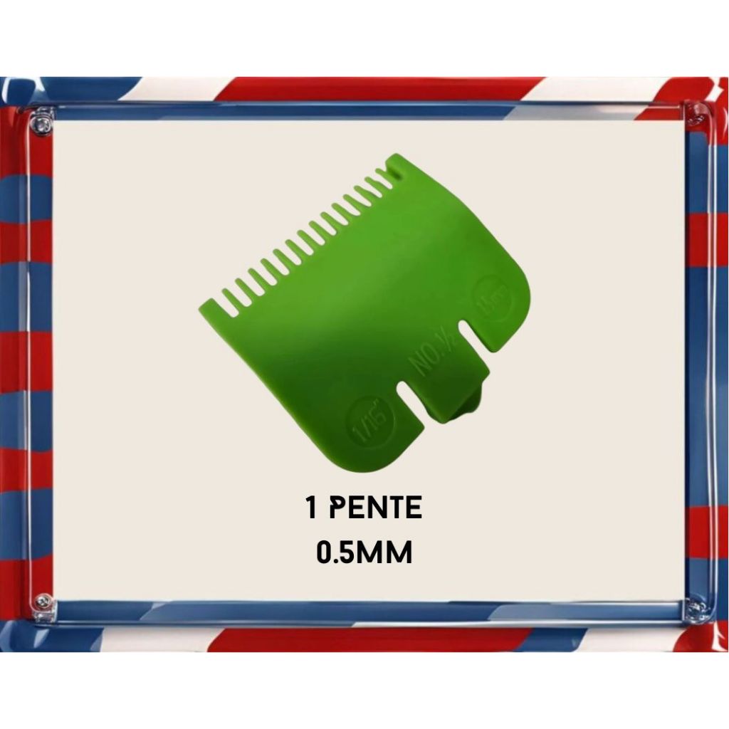 Kit Pente de Disfarce 0,5mm para Máquinas de Corte Pentes de excelente qualidade, compatíveis com diversas marcas de máquinas de corte. O pente de disfarce de 0,5mm é ideal para cortes precisos de fade, o famoso degradê, facilitando também a criação de linhas de disfarce. Perfeito para quem já possui máquinas de corte e deseja aprimorar ainda mais a experiência e a qualidade dos cortes.