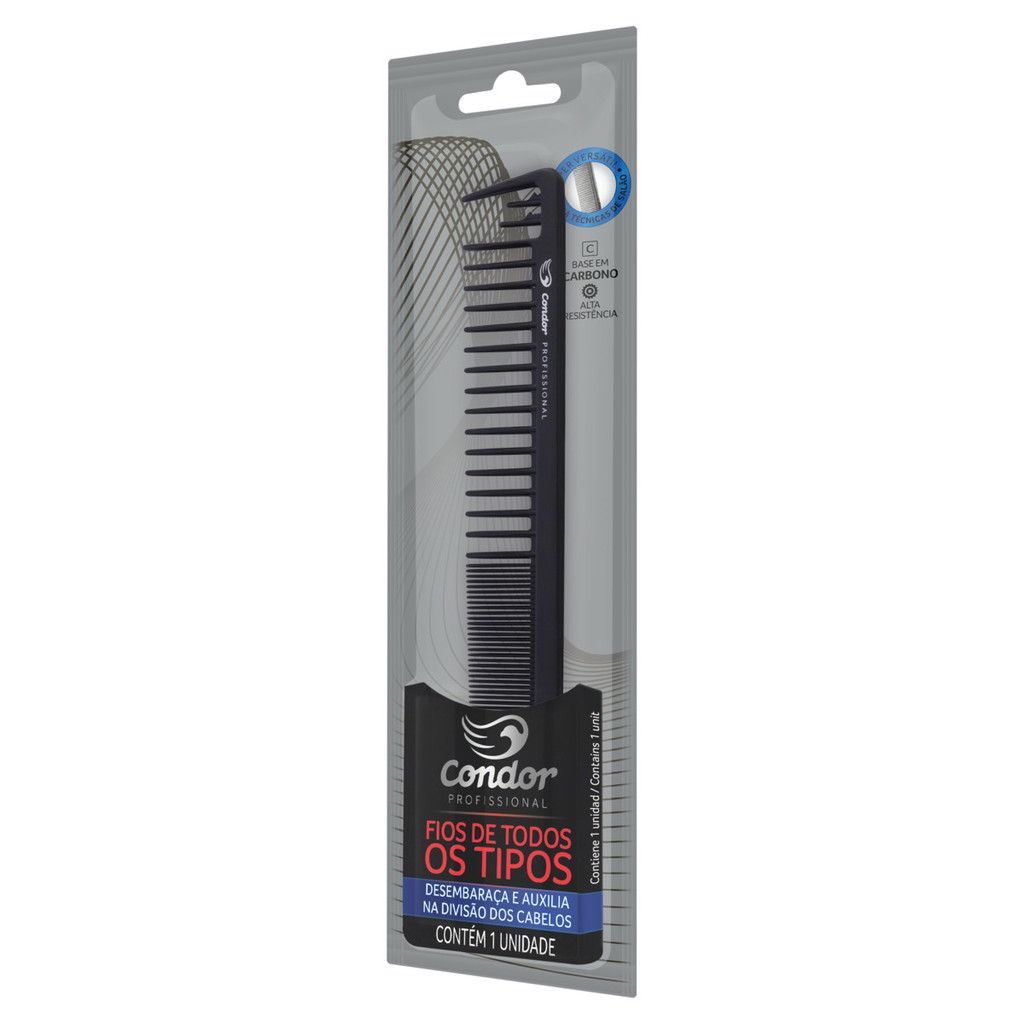 Pente Profissional para cabelos com dois tipos de dentes, para cabelos finos e grossos. Utilizado para desembaraçar, auxiliar no corte de cabelos femininos e masculinos e para auxiliar na divisão dos cabelos.