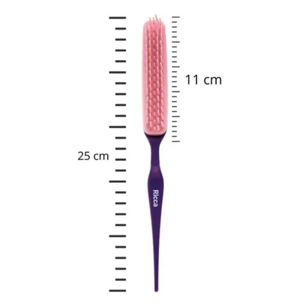 Porque amamos o Pente para Fitagem de Cabelo Cacheado:Pente de fitagem fino com cerdas flexíveis de dois tamanhos; Cabo fino que auxilia na separação dos fios;Design inovador para definição rápida e detalhada dos cachos;Perfeito para penteados, estilização e garantia de volume duradouro. O segredo e diferencial deste pente para fitagem está em seu design exclusivo, combinando camadas com diferentes tamanhos de dentes para promover maior densidade das cerdas perto da base da escova. Isso garante uma definição precisa e um resultado incrível em todos os tipos de cabelo. Como fazer Fitagem com o pente Ricca:Desembarace os fios utilizando o pente para uma preparação suave;Realize a fitagem rápida e detalhada para a definição perfeita dos cachos;Finalize seu estilo com o Pente para Fitagem Ricca, proporcionando volume e brilho incomparáveis.