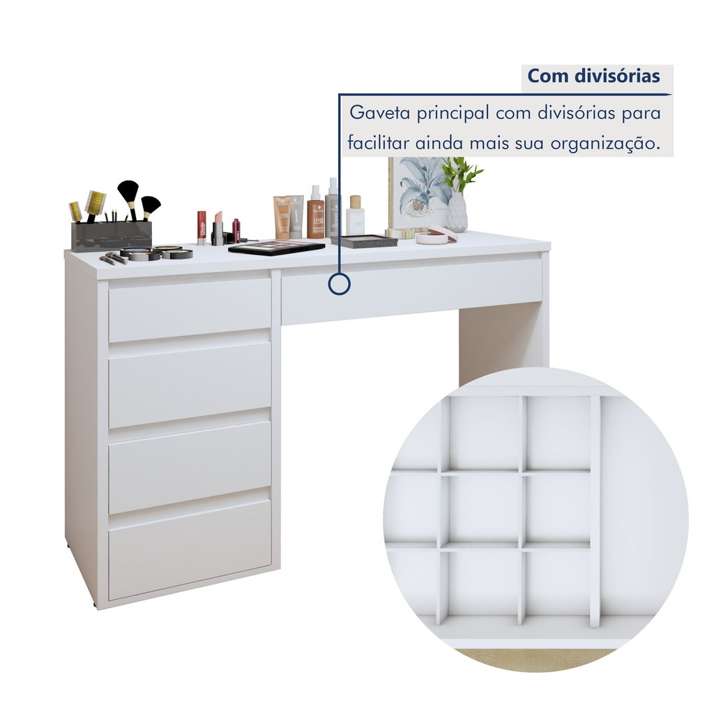 Penteadeira 5 Gavetas 100% MDF Sem Espelho Giulia Yescasa Branco
