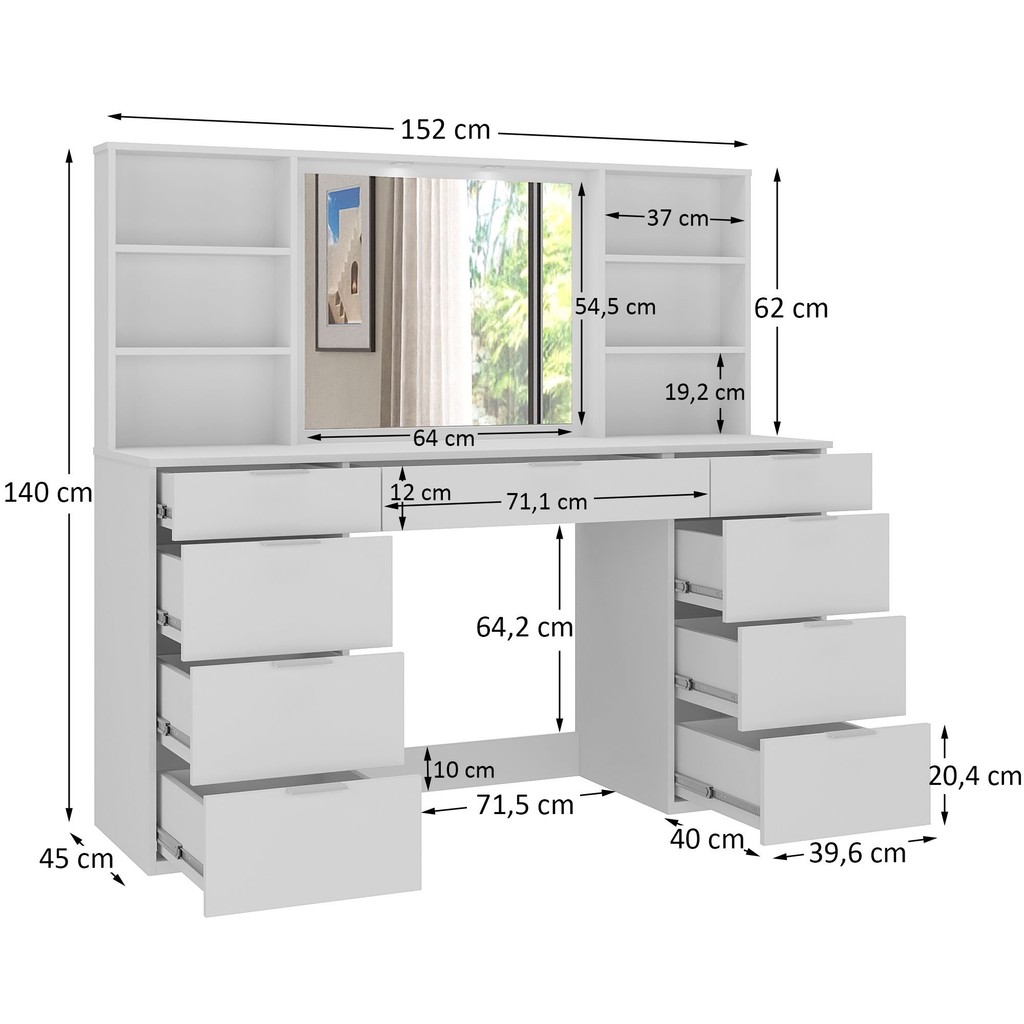 Penteadeira 9 Gavetas com Espelho e Led 8402 152
