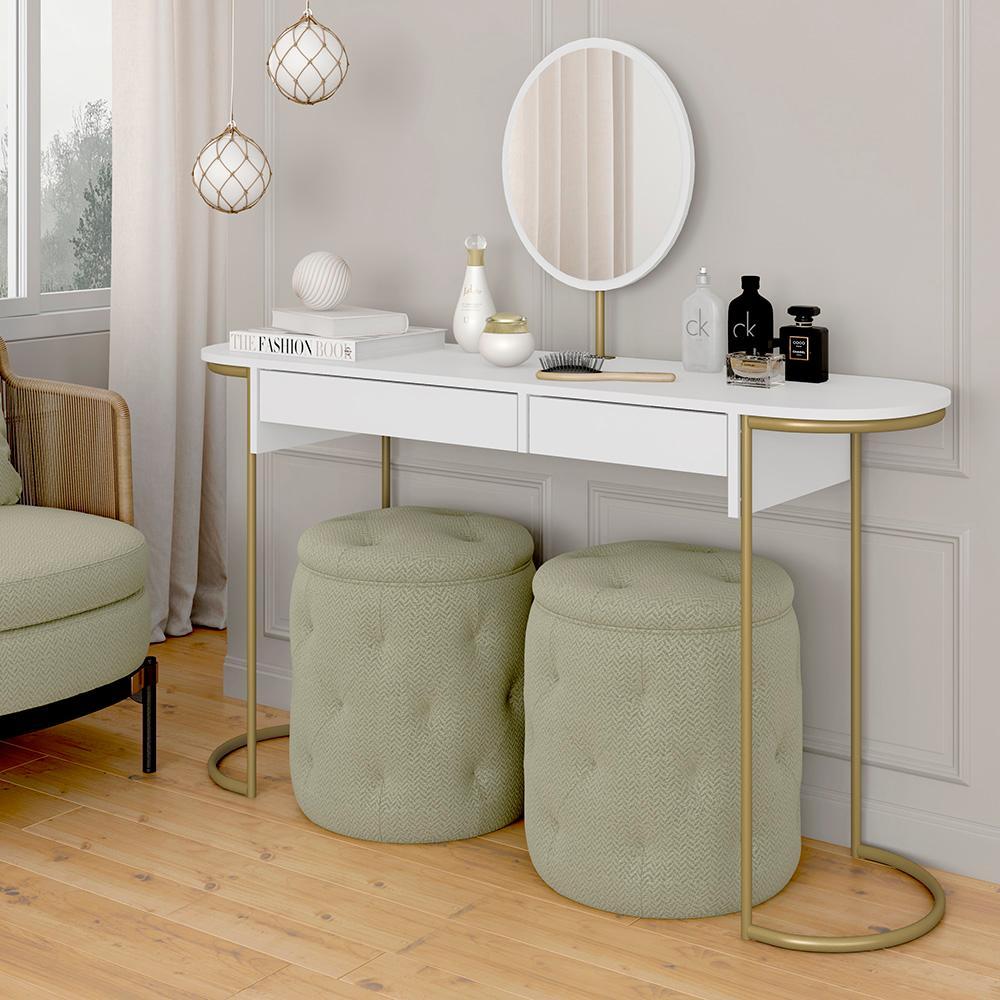 Penteadeira Aysha 2 Gavetas E Espelho Industrial Dourado/branco - M.a