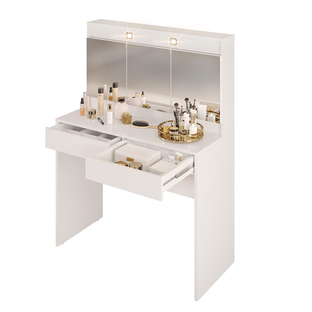 Penteadeira Camarim 3 portas com espelho e 2 gavetas Nina Branco Dj Moveis
