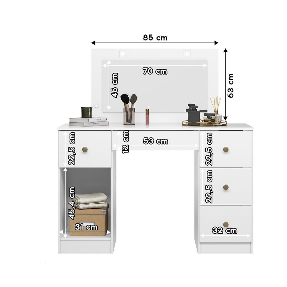 Penteadeira Camarim Sonhos com 5 Gavetas e 1 Porta e LED