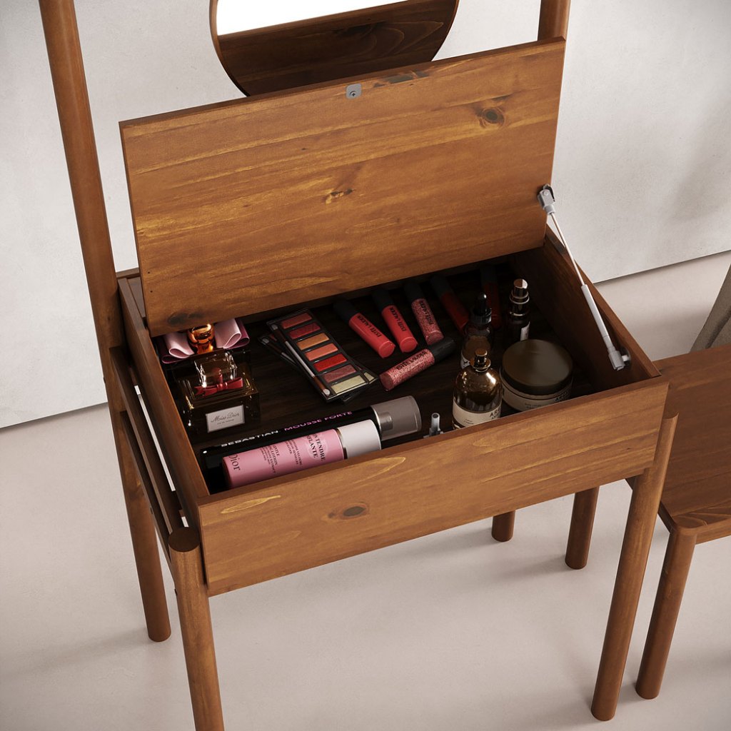 100% madeira maciça. Feito para durar. Muito mais que uma escrivaninha ou penteadeira, esta peça é um convite ao minimalismo funcional. Com design verticalizado, espelho circular suspenso e linhas limpas, ela transforma qualquer ambiente em um espaço de beleza, trabalho ou contemplação. O tampo basculante com fecho-toque e pistão a gás garante abertura suave, sem puxadores aparentes, mantendo a estética 100% limpa e sofisticada. Dentro, um amplo compartimento oferece espaço protegido para maquiagem, joias, perfumes, acessórios ou itens de trabalho, mantendo a superfície sempre livre. O conjunto acompanha banco em madeira maciça com proporções ideais, pronto para uso imediato. Disponível nas cores Freijó e Castanho Verniz, traz a beleza e a resistência da madeira real, em um móvel pensado para durar e se adaptar a diferentes momentos do dia. Funciona como penteadeira, estação de trabalho ou móvel decorativo — sempre com a elegância de um design atemporal e versátil, que foge do óbvio e valoriza cada detalhe. Dimensões do Produto: Penteadeira: Largura: 71 cm | Altura: 141 cm | Profundidade: 46 cm | Peso: 17 Kg | Banco: Largura: 35 cm | Altura: 45 cm | Peso: 3,5 Kg Materiais e Acabamento: Material da Estrutura: Madeira Maciça | Tipo da Madeira: Pinus | Fundos das Gavetas: MDF CARB | Escala de Brilho: Fosco | Material dos Pés: Pinus Maciço | Recomendação de Limpeza: Utilize pano levemente úmido Características do Produto: Quantidade de Nichos: 0 | Quantidade de Portas: 1 com Fecho-toque e Pistão a gás | Quantidade de Gavetas: 0 | Possui Rodízio: Não | Estilo: Clássica | Ambiente Principal: Quarto ou escritório | Precisa de Montagem: Sim | Sistema de Montagem: Minifix / Cavilhas / Parafusos | Complexidade da Montagem: Fácil | Volumes: 01 | Garantia do Fabricante: 12 meses | Manual de Montagem: Sim Diferenciais: Produto Versátil, Design Moderno, Madeira Maciça, Mais Resistente que MDF, Móvel Sustentável, Madeira Certificada, Pintura Livre de Solventes, MDF Livre de Formaldeído, Produto Qualidade Europeia Madeira Maciça: Nossa madeira é proveniente de recursos naturais e é tratada de forma ecologicamente correta para o bem do meio ambiente. Sua resistência e vida útil é superior a móveis de chapa MDF utilizadas pelo mercado. Nossa madeira possui mais resistência ao desgaste natural do tempo, agregando mais durabilidade ao seu produto. Pensando na qualidade dos produtos, possuímos equipes de controle de qualidade para selecionar madeiras ideais para seu produto. Informações Importantes: Montagem e Desmontagem não inclusa ao produto, de responsabilidade do cliente. Não nos responsabilizamos, no ato da entrega, por subir escadas/elevadores ou transporte por guincho em apartamentos. Eventuais despesas são de responsabilidade do comprador. Ao receber a mercadoria, o cliente deve verificar as condições da embalagem, caso haja alguma avaria não assine o comprovante de recebimento. Objetos que ambientam as fotos não acompanham o produto. Imagens meramente ilustrativas. Cores e tonalidades podem variar. O conjunto não pode ficar exposto ao Sol ou Chuva.