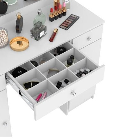 Características: Modelo desenvolvido especialmente para facilitar e organizar pertences de maquiagem e beleza, oferecendo um amplo espelho iluminado por quatro leds, três gavetas sendo a central com corrediças telescópicas e divisor para objetos, além de dois compartimentos com portas para pertences acomodação de pertences maiores. Para garantir a qualidade do produto dentro da embalagem, as caixas são revestidas por um plástico termo encolhível e todas as peças são separadas por isomanta, tudo para preservar e evitar o atrito entre as peças dentro da embalagem. Você contará também com um manual com o passo a passo para auxiliar no momento da sua montagem. Dimensões: Altura: 130 cm Largura: 108 cm Comprimento: 0,4 cm Peso: 37,2 kg Garantia do Fornecedor: 3 Meses
