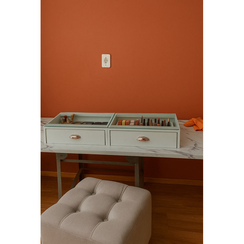 Penteadeira de Vidro 120cm C/Divisorias Camarim Maquiagem Organizadora