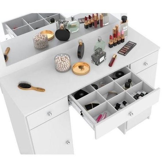 Penteadeira Demóbile Carisma com Espelho 4 LEDs com 3 Gavetas e 2 Portas Branca