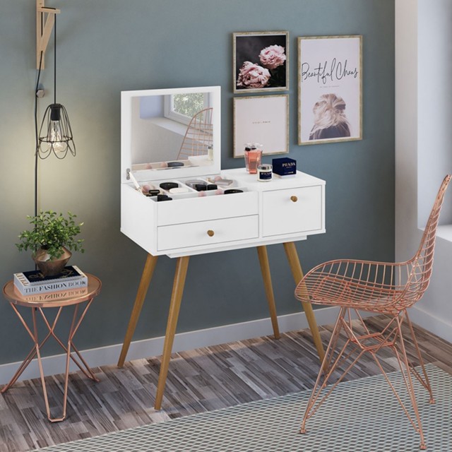 Penteadeira Retro Cristal 2 Gavetas Branco - Olivar Móveis