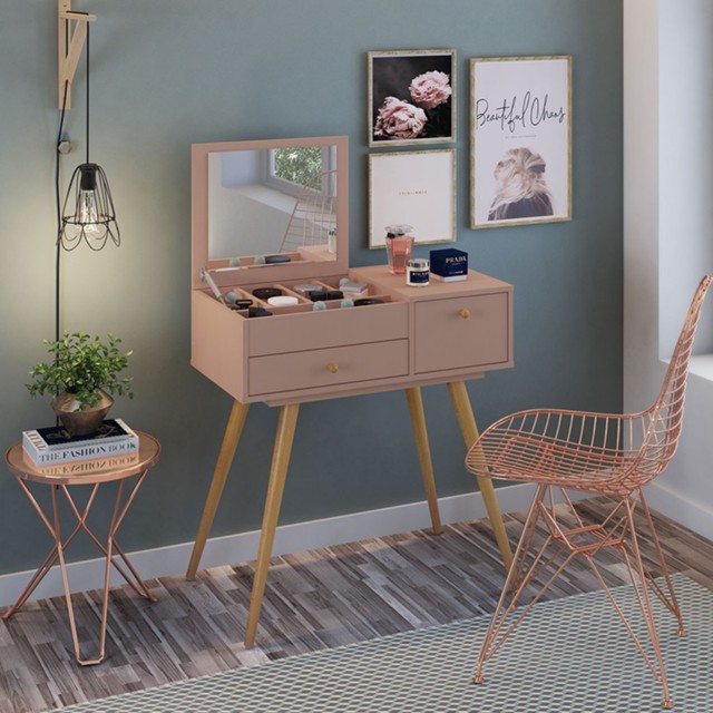 Penteadeira Retro Cristal 2 Gavetas Rose - Olivar Móveis