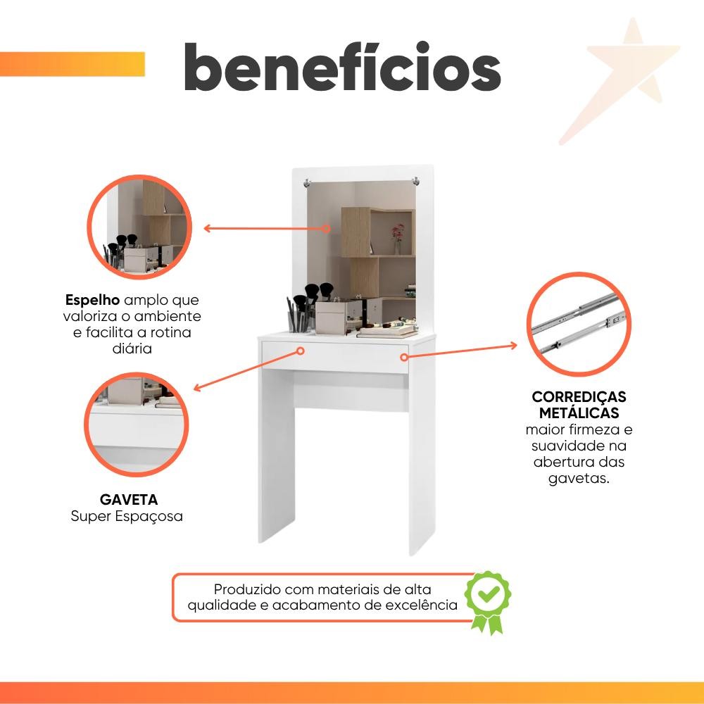 Penteadeira Sofie Com Espelho 1 Gaveta Branco