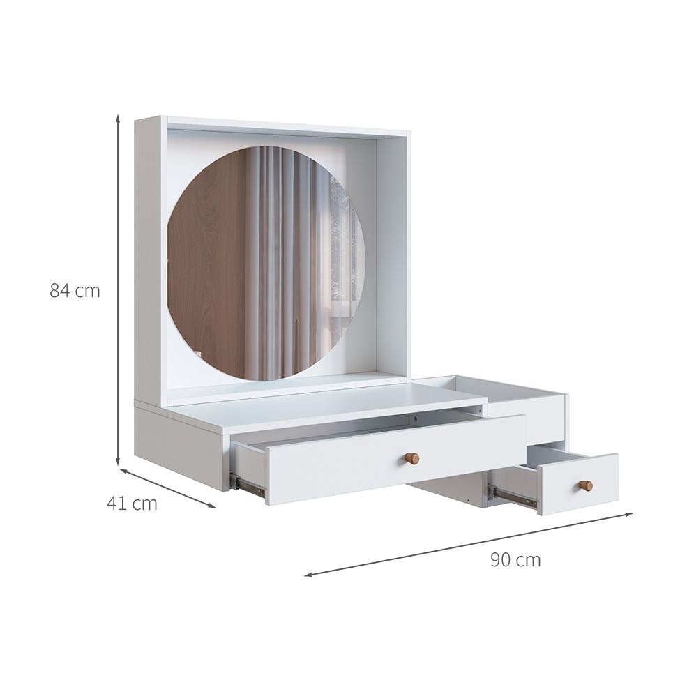 Que tal a Penteadeira Fiorela? Para deixar seu espaço de autocuidado completinho, conte com a Penteadeira Fiorela. Destacando-se pelo design clean, a peça une cor branca, espelho redondo e puxadores discretos em madeira, tudo para levar um ar delicado e sofisticado ao ambiente. Enquanto isso, as gavetas com corrediças telescópicas abrem com mais facilidade e permitem maior amplitude, assim seus cosméticos ou outros itens pessoais estarão sempre com o acesso facilitado. Linda, né? Daí é só adquirir um puff ou cadeira e está completo seu cantinho ;) Cor: Branco Garantia em Meses: 3 Cores do Produto: Branco Instruções/Cuidados: Para a limpeza do móvel utilizar pano levemente umedecido Conteúdo da Embalagem: 1 Penteadeira - Entregue em: 1 Volume Modelo: Fiorela Número de Volumes: 1 Material: A Penteadeira Fiorela possui estrutura em MDP 15 mm, espelho comum 3 mm, gavetas com corrediças telescópicas, puxadores em madeira e acabamento fosco Material para Filtro: MDP Descrição do Tamanho: Altura: 84 cm | Largura: 90 cm | Profundidade: 41 cm Altura do Produto (cm): 84 Largura do Produto (cm): 90 Comprimento do Produto (cm): 41 Peso do Produto (Kg): 10 Produto precisa de Montagem?: Sim, sugerimos a contratação do nosso serviço de montagem (para os CEPs em que o serviço está disponível) ou de algum profissional experiente de sua preferência Número de portas: Sem portas Número de gavetas: 2 Acompanha banco/puff: Não Material da estrutura: MDP Material do puxador: Madeira Possui espelho/vidro: Sim Tipo da Corrediça da gaveta: Telescópica PROFUNDIDADE x LARGURA x ALTURA: 41 x 90 x 84 Fornecedor: PRODECOR MÓVEIS LTDA. Baterias são necessárias?: Não Certificação de teste externa: Não Componentes incluídos: Não Is Fragile: Não Número da peça: Não Produto: Penteadeira