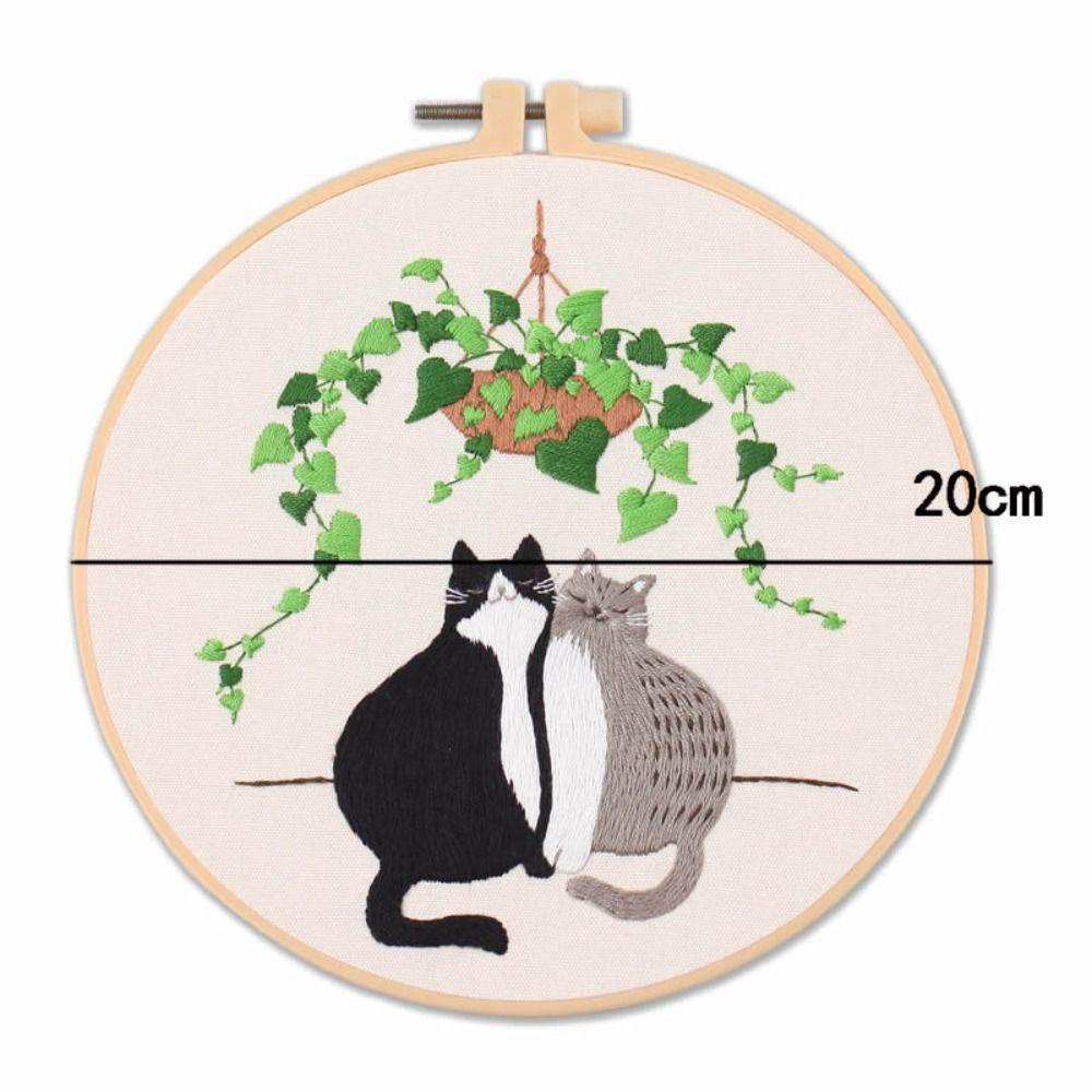 PEONYHOME Kit De Ponto Cruz , Aro De Bordado Com Padrão De Gato , Kits DIY , Acessórios De Costura