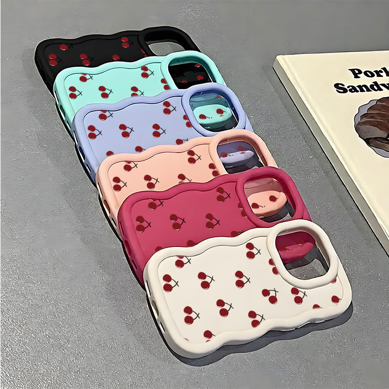 Pequena Cereja Capa Capinha Silicone Anti-impacto Para IPhone 7 8 14 15 16 16E 13 11 12 17 Normal Pro Plus Max Ar Caso D
