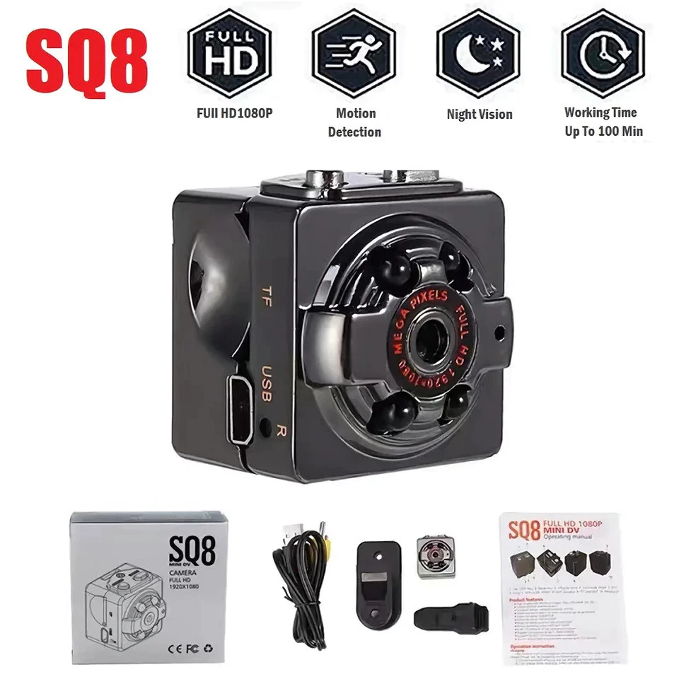 Descrição: Modelo do SQ8 Capacidade da bateria da bateria: 180 mah Nome do chipset Syntek Requisitos do sistema: mc os x 10.3.6 acima, ganha 7, janelas 2000 / xp / vista Cartão externo máximo suportado: TF 32g (não incluído) Requisitos de classificação de classe de classe de requisitos: Classe 10 ou superior Tipo de bateria tipo bateria: embutido - em Maneira de carregamento: Carga USB por pc Tempo de trabalho: cerca de 100 minutos a 1080p 30fps Câmera Pixel Pixel: 12MP Formato de decodificação de vídeo: MJPG Formato de vídeo do vídeo: AVI Resolução de vídeo de vídeo: 1080 p (1920x1080), 720 p (1280x720) Taxa de quadro de vídeo: 30fps Formato de Imagem: JPG Resolução da imagem da imagem: 12 m (4032x3024) Sistema de áudio de áudio do microfone: embutido - em microfone / speacker (aac) Detecção de movimento do movimento: Sim Função USB: usb - disco Tipo de Interface: Mini USB Especificações do produto: Pixels de alta resolução 1:1080P. Desligue a luz quando for invisível. 2:Tamanho Mini, adequado para todas as ocasiões, como lições, reuniões, concertos e entrevistas etc. Visão noturna de IR, adequada para observação noturna. Conecte este mini DV a uma TV, você pode assistir vídeos em sua TV. 4: Leve e fácil de transportar, este mini DV será ferido porque você não poderá cartão TF (não incluído). 360 graus ajustável, muito flexível e confortável. Gravação em círculos, não precisa excluir vídeos anteriores. Será gravado automaticamente quando um movimento aparecer na área de monitoramento, a vigilância de vídeo será gravada automaticamente. Incluído no Pacote do pacote: 1 * câmera Mini Passeio 1 * cabo AV 1 * Manual