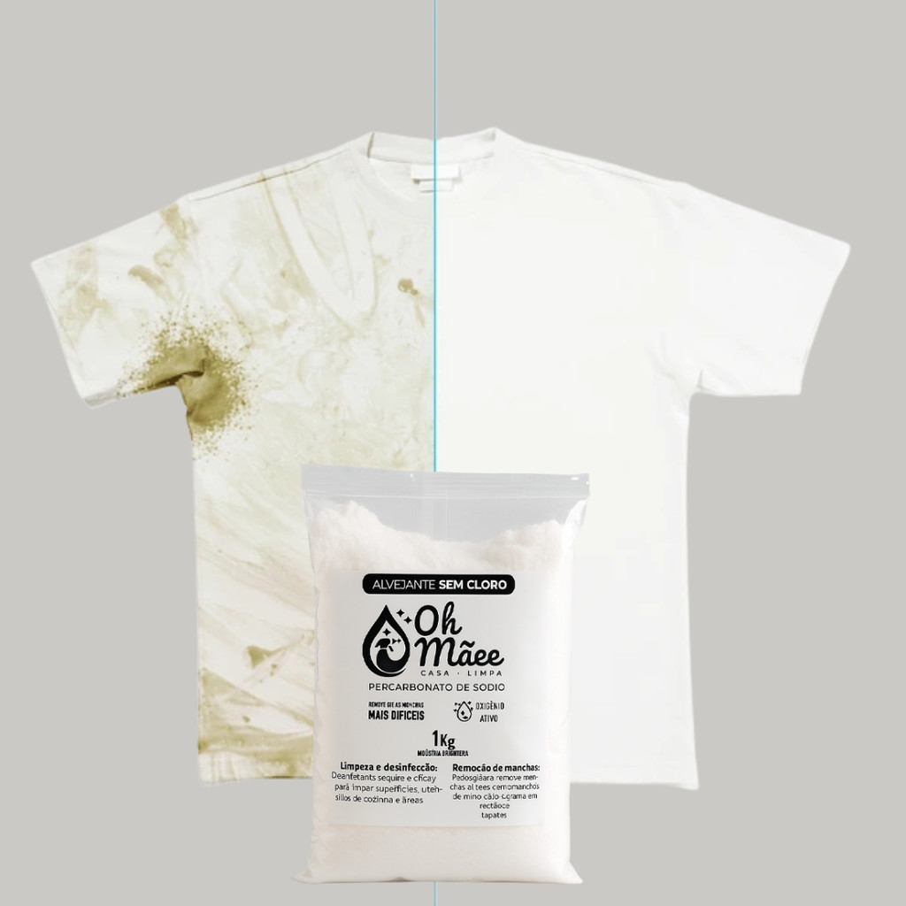 Percarbonato de sódio . É um produto versátil utilizado em limpeza em geral. Com a finalidade de desinfecção, esterilização e higienização. Roupas e tecidos; Utilizado para roupas brancas e coloridas. Muito utilizado em tecidos para remoção de manchas profundas e difíceis, como amarelado pelo tempo , manchas feitas por desodorantes , cremes, manchas de vinho , café e sangue, etc… Pode ser utilizado em máquina de lavar roupa ou molho em água morna ou temperatura ambiente. Pode ser utilizado para fazer detergente e sabão. Limpeza; Muito utilizado em limpeza de pisos, azulejos, chão de quintal , utensílios de cozinhas e toda área doméstica , áreas internas e externas. Removedor de odores; Utilizado para retirar odores indesejados de mofo, calçados e roupas . Pode ser utilizado em toda área domestica. Produto não contém cloro, esse produto é ecologicamente correto . Aspecto do produto; Pó branco micro textura, sem cheiro.
