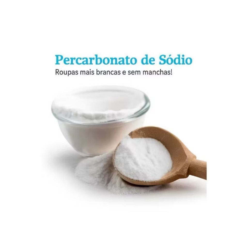 Percarbonato de sódio . 1 Kg / 2KG / 3 Kg / 4 Kg / 5 Kg / 6kg É um produto versátil utilizado em limpeza em geral. Com a finalidade de desinfecção, esterilização e higienização. Roupas e tecidos; Utilizado para roupas brancas e coloridas. Muito utilizado em tecidos para remoção de manchas profundas e difíceis, como amarelado pelo tempo , manchas feitas por desodorantes , cremes, manchas de bebidas com fortes corantes , café , etc… Pode ser utilizado em máquina de lavar roupa ou molho em água morna ou temperatura ambiente. Pode ser utilizado para fazer detergente e sabão. Limpeza; . Muito utilizado em limpeza de pisos, azulejos, chão de quintal , utensílios de cozinhas e toda área doméstica , áreas internas e externas Removedor de odores; Utilizado para retirar odores indesejados de mofo, calçados e roupas . Pode ser utilizado em toda área domestica. Produto não contém cloro, esse produto é ecologicamente correto . Aspecto do produto; Pó branco micro textura, sem cheiro.