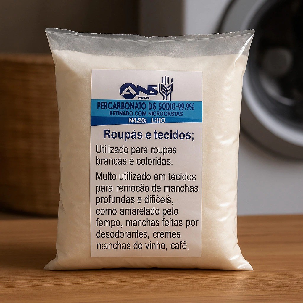 Poder Máximo de Limpeza com Oxigênio Ativo! O Percarbonato de Sódio é o limpador ideal para quem busca remoção profunda de manchas, clareamento e higienização poderosa, sem agredir tecidos ou superfícies. Ao entrar em contato com a água, ele libera oxigênio ativo, eliminando sujeiras difíceis, odores e bactérias com eficiência profissional. ✅ Principais Benefícios: Remove manchas difíceis (sangue, gordura, vinho, mofo) Clareia roupas brancas e coloridas sem danificar Elimina odores fortes Ação antibactericida Ideal para roupas, estofados, pisos, rejuntes e cozinha Produto biodegradável e sem cloro NÂO MANCHA 🔎 Onde Pode Ser Usado: Roupas brancas e coloridas Panos de limpeza Rejuntes e pisos Estofados e tapetes Desengordurante para cozinha Limpeza pesada em geral 📦 Detalhes Técnicos: Produto: Percarbonato de Sódio Função: Limpador e alvejante sem cloro Ativo principal: Oxigênio ativo Estado físico: Pó Uso: Doméstico e profissional Solúvel em água ❓ Dúvidas Frequentes (FAQ) 1. Ele substitui o cloro? Sim! Ele clareia e desinfeta sem o cheiro forte e sem danificar os tecidos. 2. Pode usar em roupa colorida? Sim, desde que respeitadas as instruções de uso. 3. Remove mofo? Sim, é altamente eficaz na remoção de manchas de mofo e odores. 4. Dá para usar em pisos e rejuntes? Sim! Excelente para encardidos e limpeza pesada.