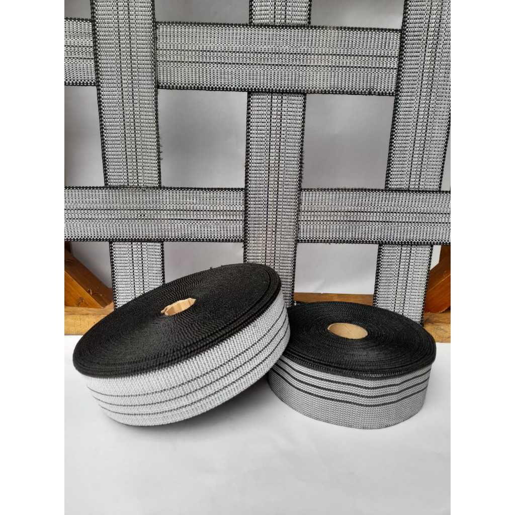 Percinta elástica com largura de 5 centímetros e rolos com 10 metros de comprimento . Alta resistência ,forte . cor com ton acinzentado . Indicada para assento e encosto de estofados, sofas, poltronas, cadeiras, puffs, tapeçarias decorações e outros... Aprovadas por testes de cargas estática e fadiga sobre o assento. Alongamento em torno de 60% podendo haver uma variação de 5% para mais ou para menos. Composição : 60% de polipropileno (1260) com alta qualidade e resistência 40% látex revestido com poliéster. Mais alguma duvida estamos à disposição.