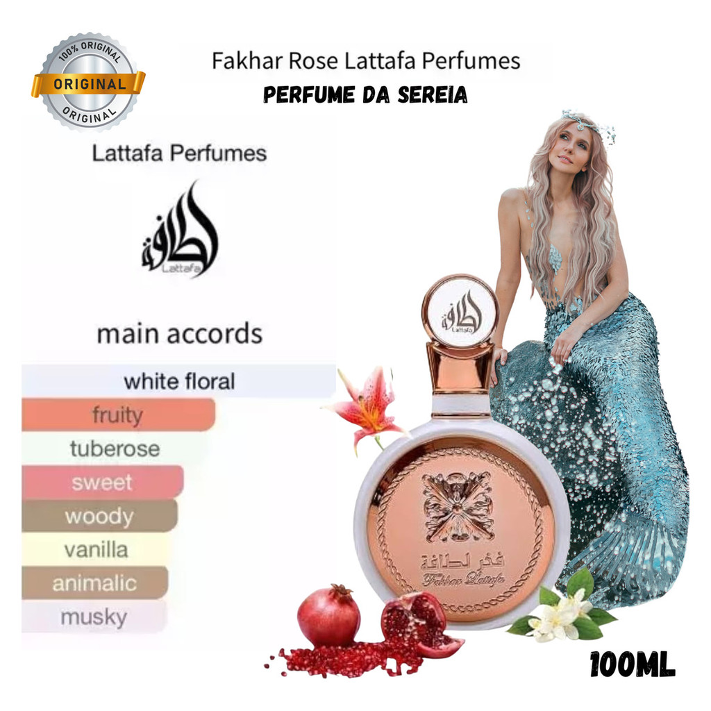 Perfume Árabe Fakhar Rose Lattafa Sereia Feminino 100ml