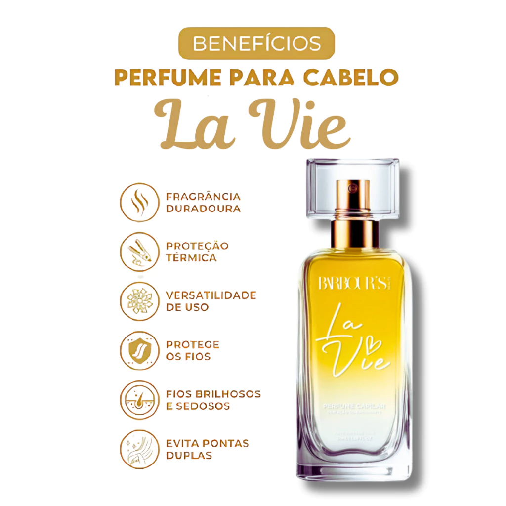 !!! LANÇAMENTO 2025 - NOVA EMBALAGEM !!! Indicado para todos os tipos de cabelo. Ideal para quem deseja cabelos Cabelos perfumados, Cabelos protegidos , Cabelos com brilho intenso ao longo do dia. Perfume Capilar La Vie - BARBOUR'S BEAUTY - 50ml Revendedor BARBOUR'S BEAUTY (todos produtos originais e com nota) << BENEFÍCIOS >> - Fragrância Duradoura: Desfrute de uma fragrância agradável que perdura nos seus cabelos ao longo do dia, proporcionando uma sensação fresca e perfumada. - Proteção Térmica: Protege os cabelos dos danos causados por ferramentas térmicas, como secadores de cabelo, chapinhas e modeladores de cachos. Ajuda a minimizar a desidratação e a quebra causadas pelo calor excessivo. - Versatilidade de Uso: Pode ser aplicado em cabelos secos ou úmidos, oferecendo versatilidade no uso. Ideal para revitalizar o cabelo entre lavagens ou antes do uso de ferramentas térmicas. - Cabelos Perfumados Instantaneamente: Oferece uma maneira rápida e fácil de adicionar uma fragrância irresistível aos seus cabelos sem a necessidade de usar um perfume tradicional << SOBRE O PRODUTO >> O Perfume Capilar La Vie é uma expressão encantadora de elegância e feminilidade. Uma fragrância que transcende o convencional, captando a essência de momentos inesquecíveis. Com uma combinação harmoniosa de notas, La Vie transforma seus cabelos em uma cascata perfumada, proporcionando uma experiência sensorial única. << MODO DE USO >> Para incorporar essa experiência sensual em sua rotina diária, agite bem o frasco e borrife o Perfume Capilar La Vie nos cabelos secos ou úmidos sempre que sentir a necessidade de revigorar seus sentidos. O spray leve e delicado deixa os cabelos com uma fragrância de longa duração, sem sobrecarregar, promovendo brilho intenso e proteção contra danos externos. << NOTAS >> - La Vie inicia com uma explosão refrescante de Groselha Preta, proporcionando uma doçura enigmática, enquanto a Pera contribui com sua frescura frutada, formando uma combinação que desperta os sentidos. - O coração desta fragrância revela uma tríade encantadora. Íris, com sua elegância atemporal, se entrelaça com a sedução do Jasmim e a suavidade cítrica da Flor de Laranjeira, criando uma experiência olfativa envolvente. - As notas de fundo adicionam uma profundidade irresistível ao La Vie. Pralinê e Baunilha se unem para criar uma doçura acolhedora, enquanto o Patchouli acrescenta um toque terroso e sensual. A Fava Tonka completa a composição com sua nota amadeirada, conferindo uma base duradoura e envolvente.