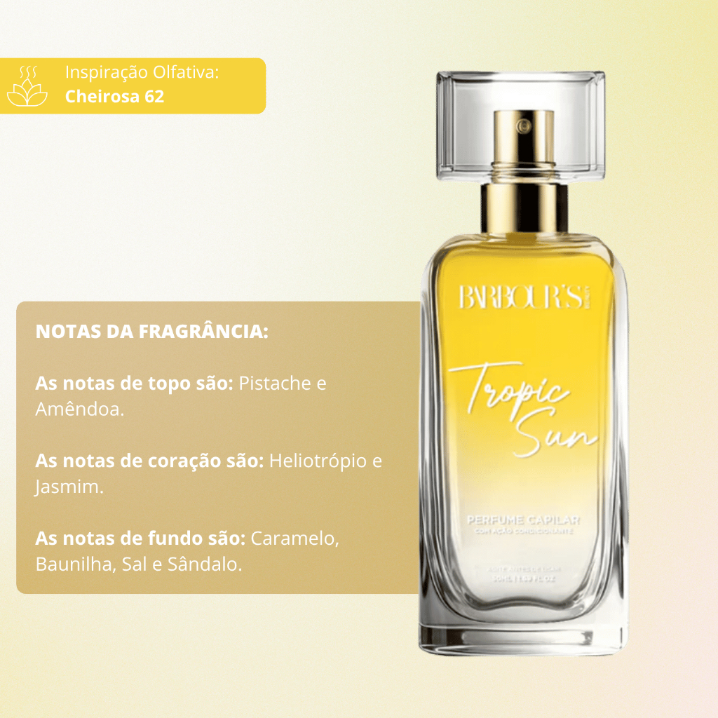 Perfume Capilar Tropic Sun Barbour's Beauty 50ml Finalizador Termoativo Leave-in Efeito antiodor