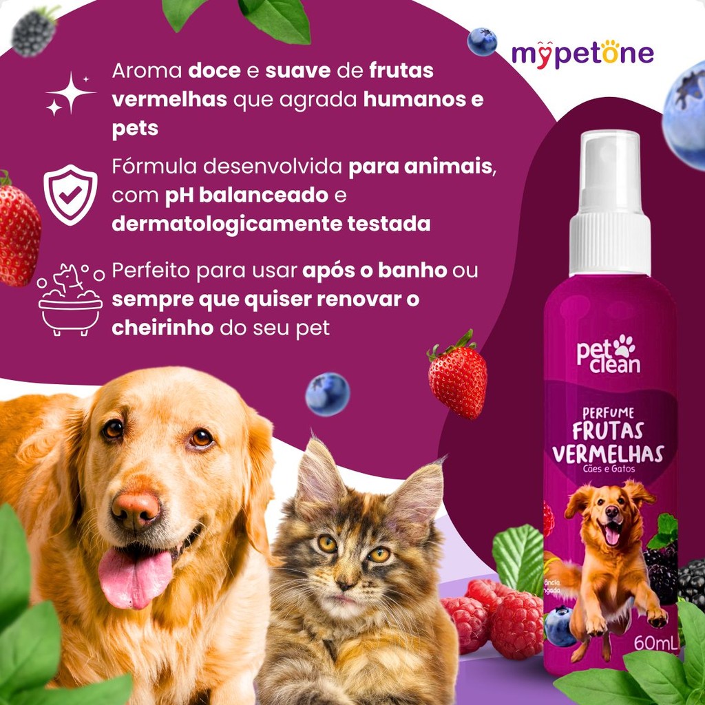 Perfume Colônia Frutas Vermelhas 60ml P/ Cães E Gatos - Pet Clean
