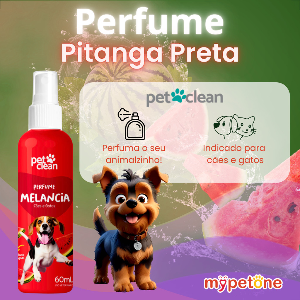 Perfume Melancia Pet Clean Refrescante, leve e divertido, o Perfume Melancia Pet Clean é ideal para quem quer deixar seu pet com um cheirinho doce e tropical. A fragrância de melancia traz uma sensação agradável e suave, perfeita para o dia a dia e para tornar o momento com seu pet ainda mais especial. Indicado para cães e gatos de todas as raças, o perfume é de fácil aplicação e tem excelente fixação na pelagem, mantendo o pet cheiroso por muito mais tempo. Benefícios do Perfume Melancia Pet Clean: - Fragrância frutada e refrescante de melancia - Alta fixação e longa duração do aroma - Indicado para cães e gatos de todas as idades (a partir de 90 dias) - Não agride a pele nem o olfato dos animais - Aplicação prática com frasco spray Modo de usar: Após o banho, borrife o perfume na pelagem do animal, evitando olhos, narinas e mucosas. Reaplique quando desejar renovar o aroma. Composição: - Álcool neutro - Fragrância de melancia - Conservante Informações Técnicas: - Produto: Perfume Melancia Pet Clean – 60ml - Tipo: Beleza e Higiene - Marca: Pet Clean - Indicado para: Cães e Gatos a partir de 90 dias - Apresentação: Frasco com válvula spray Precauções: - Uso exclusivo em animais domésticos - Não aplicar em filhotes com menos de 3 meses - Manter fora do alcance de crianças - Não reutilizar a embalagem Proporcione um aroma tropical e irresistível ao seu pet com o Perfume Melancia Pet Clean!