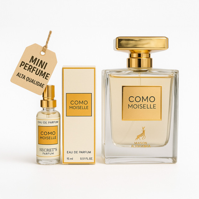 Perfume Como Moiselle 15ml | Mini Feminino Importado | Floral Elegante | Alta Fixação e Sofisticação aparece na subcategoria Perfumes e Fragrâncias (de Beleza) na Shopee Brasil por R$ 28,89 (42% de desconto sobre o preço original de R$ 49,81). Avaliado em 4.5/5 pelos compradores e 203 unidades vendidas, este produto se destaca pelo excelente custo-benefício.