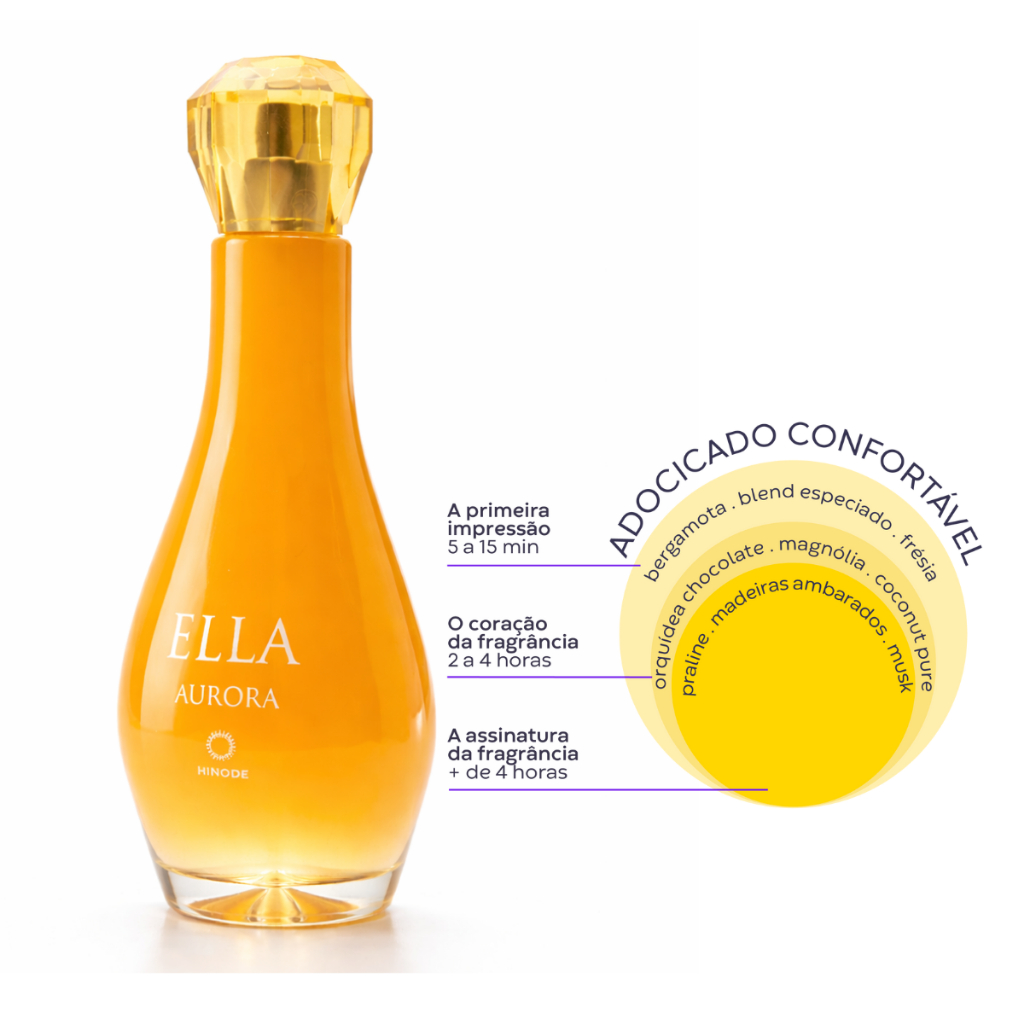 Ella Aurora simboliza a capacidade de renascer e enxergar cada manhã como um novo começo. Uma fragrância feminina, marcante e luminosa, criada para mulheres de espírito livre, otimistas e cheias de personalidade. A abertura revela o frescor vibrante da Bergamota, combinado à suculência da Pera e a um delicado blend especiado, envoltos pela cremosidade da Baunilha, que reforça o caráter alegre e acolhedor da fragrância. No coração, um floral oriental envolvente ganha destaque com a sofisticação da Orquídea Chocolate e da Magnólia, enriquecidas por nuances cremosas do Coconut Pure, trazendo conforto e feminilidade. O fundo evolui para uma combinação elegante e irresistível de Madeiras Ambaradas, a doçura aditiva do Pralinê e o toque macio e envolvente do Musk, deixando um rastro aconchegante e marcante. Ideal para o dia a dia ou para momentos em que você deseja se sentir confiante, radiante e confortável, Ella Aurora é uma fragrância que ilumina cada instante. Família Olfativa Adocicado Confortável Notas Olfativas Topo: Bergamota, Blend Especiado, Pera Corpo: Orquídea Chocolate, Magnólia, Coconut Pure Fundo: Pralinê, Madeiras Ambaradas, Musk Uma fragrância feminina envolvente, doce na medida certa e perfeita para quem ama conforto com personalidade. Produto 100% original Hinode. Loja oficial com envio seguro e procedência garantida.