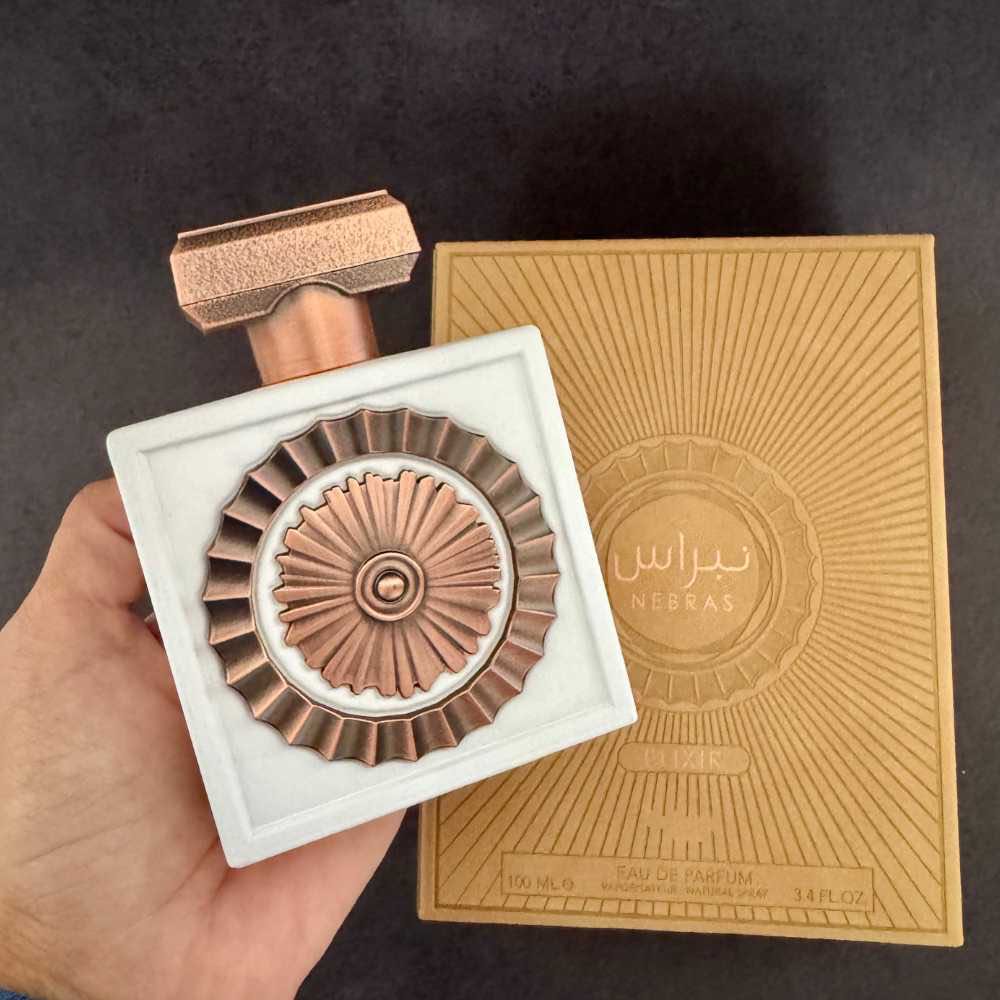 Nebras Elixir de Lattafa Perfumes é um perfume Oriental Baunilha Compartilhável. As notas de topo são: Bala de Leite e Chantilly. As notas de coração são: Cana-de-Açúcar e Heliotrópio. As notas de fundo são: Baunilha, Ambroxan e Almíscar.