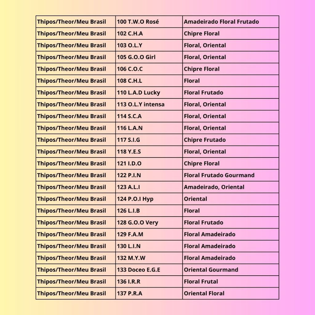 Conheça a linha Thipos da Kosmetic, que oferece perfumes de altíssima qualidade e reconhecimento no mercado. Cada fragrância é criada com matérias-primas importadas, garantindo excelente fixação e uma experiência olfativa única, que cativa e surpreende a cada uso. Com uma coleção de mais de cem fragrâncias sofisticadas, a linha Thipos acompanha as maiores marcas internacionais, transformando o simples ato de se perfumar em uma experiência que eleva a autoestima e proporciona bem-estar, tornando momentos cotidianos em lembranças especiais e inesquecíveis. Os perfumes estão disponíveis nos formatos de 100ml, 55ml e 7ml, com opções femininas e masculinas, todas com pronta entrega. Para descobrir mais sobre a linha Thipos e escolher a fragrância que melhor reflete seu estilo e personalidade, entre em contato conosco! Sobre a Perfumoteca Como revendedores autorizados da Thipos, a Perfumoteca se destaca por seu compromisso com a excelência. Nosso objetivo é proporcionar uma experiência única a cada cliente, entregando não apenas produtos, mas também atenção e cuidado em cada detalhe. ======================================================================= Conheça todas nossas fragrâncias, nos chame no chat! Perguntas Frequentes P: Quando é realizado o envio? R: Compras feitas até 12:00 o pedido é enviado no mesmo dia! Após 12:00 compras são enviadas no dia seguinte. P: Qual o tempo médio de fixação? R: Nossos perfumes possuem a média de fixação de 4 a 6 horas, mas isso e um fator que varia de acordo com o Ph da pele de cada cliente e temperatura, no entanto temos perfumes que se sobressaem a essa média, podendo atingir até 8 horas de fixação. P: Tem a pronta entrega? R: Sim, temos disponível a pronta entrega.