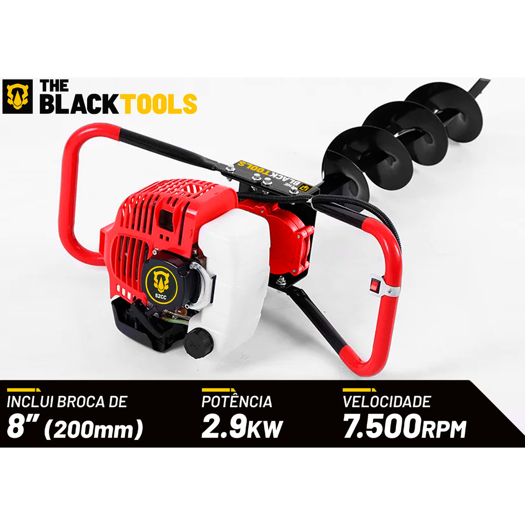 Perfurador De Solo Profissional A Gasolina 52cc Motor 2 Tempos Com Broca The Black Tools