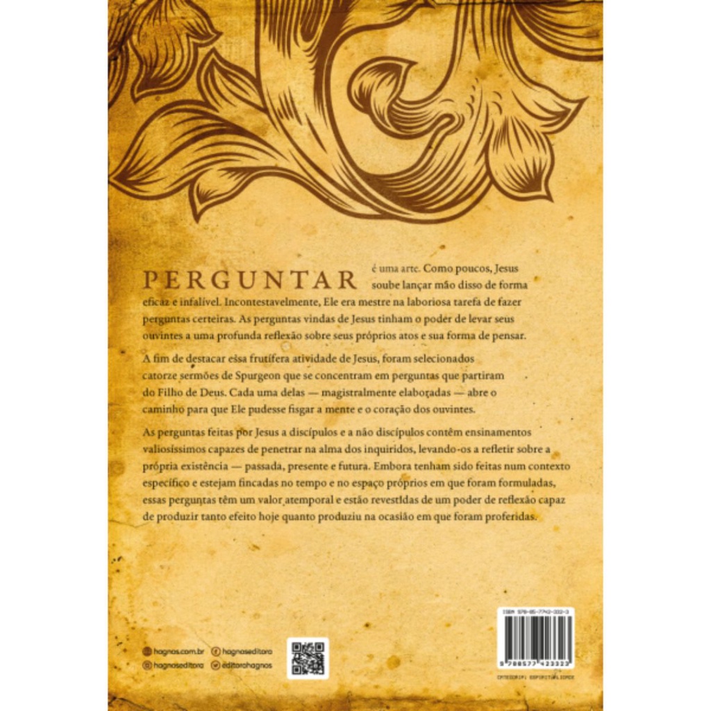 Perguntar é uma arte. Como poucos, Jesus soube lançar mão disso de forma eficaz e infalível. Incontestavelmente, Ele era mestre na laboriosa tarefa de fazer perguntas certeiras. As perguntas vindas de Jesus tinham o poder de levar seus ouvintes a uma profunda reflexão sobre seus próprios atos e sua forma de pensar. A fim de destacar essa frutífera atividade de Jesus, foram selecionados catorze sermões de Spurgeon que se concentram em perguntas que partiram do Filho de Deus. Cada uma delas magistralmente elaboradas abre o caminho para que Ele pudesse fisgar a mente e o coração dos ouvintes. As perguntas feitas por Jesus a discípulos e a não discípulos contêm ensinamentos valiosíssimos capazes de penetrar na alma dos inquiridos, levando-os a refletir sobre a própria existência passada, presente e futura. Embora tenham sido feitas num contexto específico e estejam fincadas no tempo e no espaço próprios em que foram formuladas, essas perguntas têm um valor atemporal e estão revestidas de um poder de reflexão capaz de produzir tanto efeito hoje quanto produziu na ocasião em que foram proferidas. Detalhes do Produto: Autor: Charles Haddon Spurgeon Editora: Hagnos Acabamento: Brochura Dimensões: 16 larg. X 23 alt. Número de páginas: 304