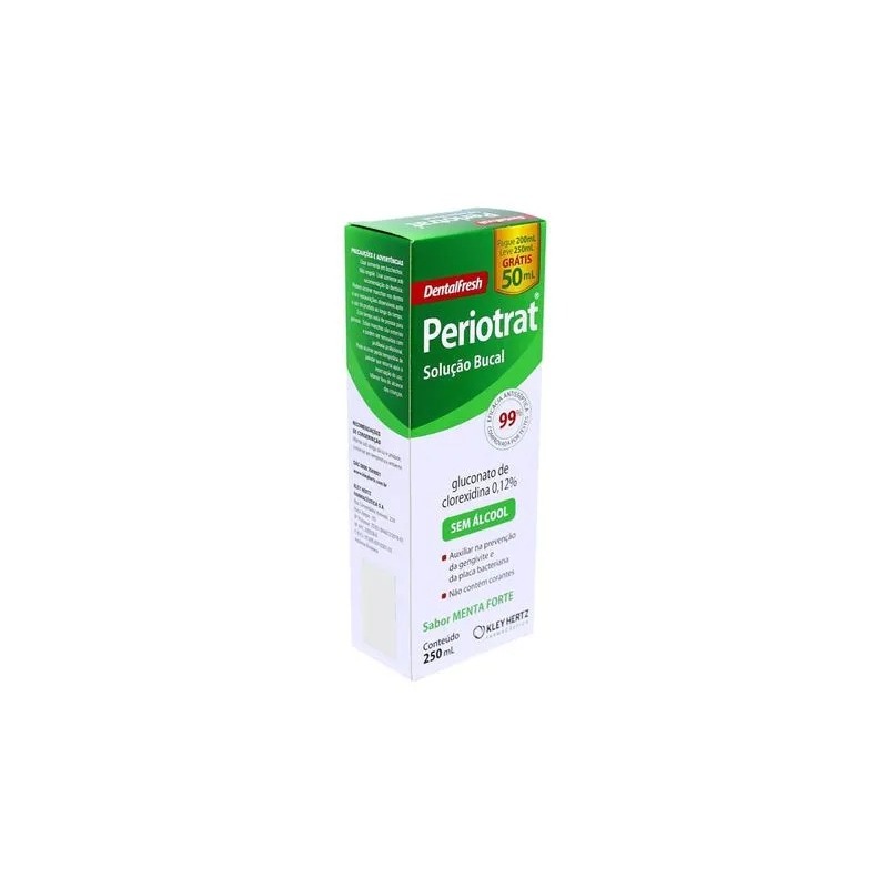 Periotrat Solução Bucal 250ml – Clorexidina 0,12% | Sem Álcool O Periotrat é um enxaguante bucal terapêutico com gluconato de clorexidina a 0,12%, ideal para a higiene bucal avançada. 🌿 Sem Álcool – Mais conforto e menos ardência 💨 Combate o mau hálito 🦷 Auxilia no controle da gengivite e placas bacterianas 🍃 Sabor Menta Forte ✅ Indicado para uso diário, conforme orientação odontológica ✅ Elimina 99% das bactérias causadoras de problemas bucais 📅 Validade: até Novembro/2026 🧪 Produto dermatologicamente e odontologicamente testado
