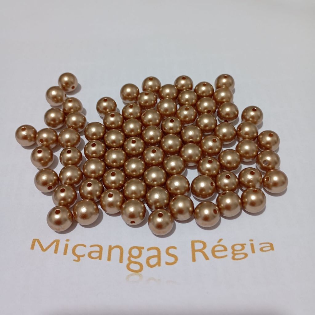 Pérola Dourada com Furo Passante tamanho 10mm Pacote 100 Unidades ideal para terços, colares e pulseiras.