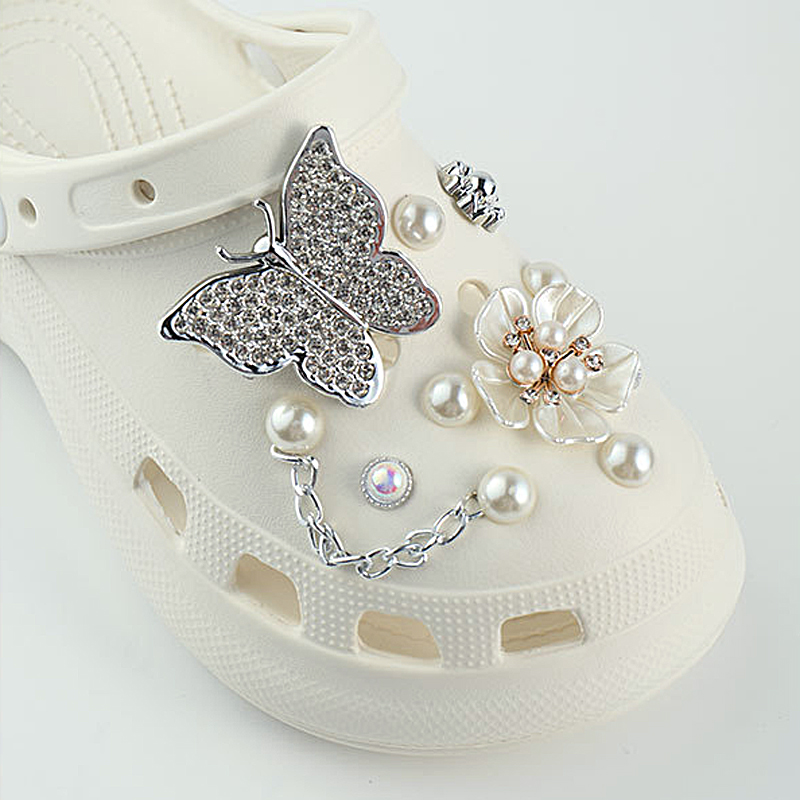 Pérola Strass Borboleta Sapato Encantos Conjunto Elegante Acessórios Decorativos Para Tamancos Sandálias Mulheres Menina