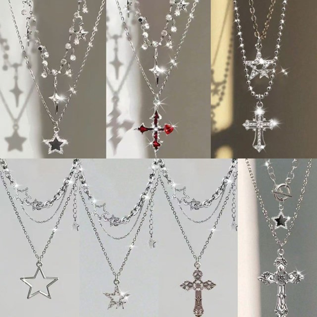Personalidade Casual Multi-Camada Correntes Colares Para Mulheres Gótico Estrela Cruz Pingente Colar Jóias