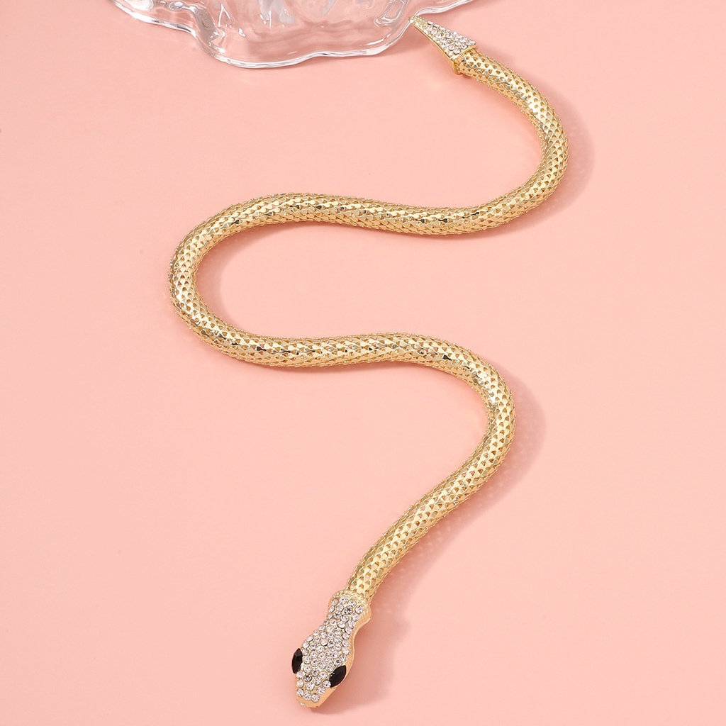 Personalidade Colares Exagerados Em Forma De Cobra De Ouro Para Mulheres Jóias Cadeia De Clavícula Feminina Rhinestone